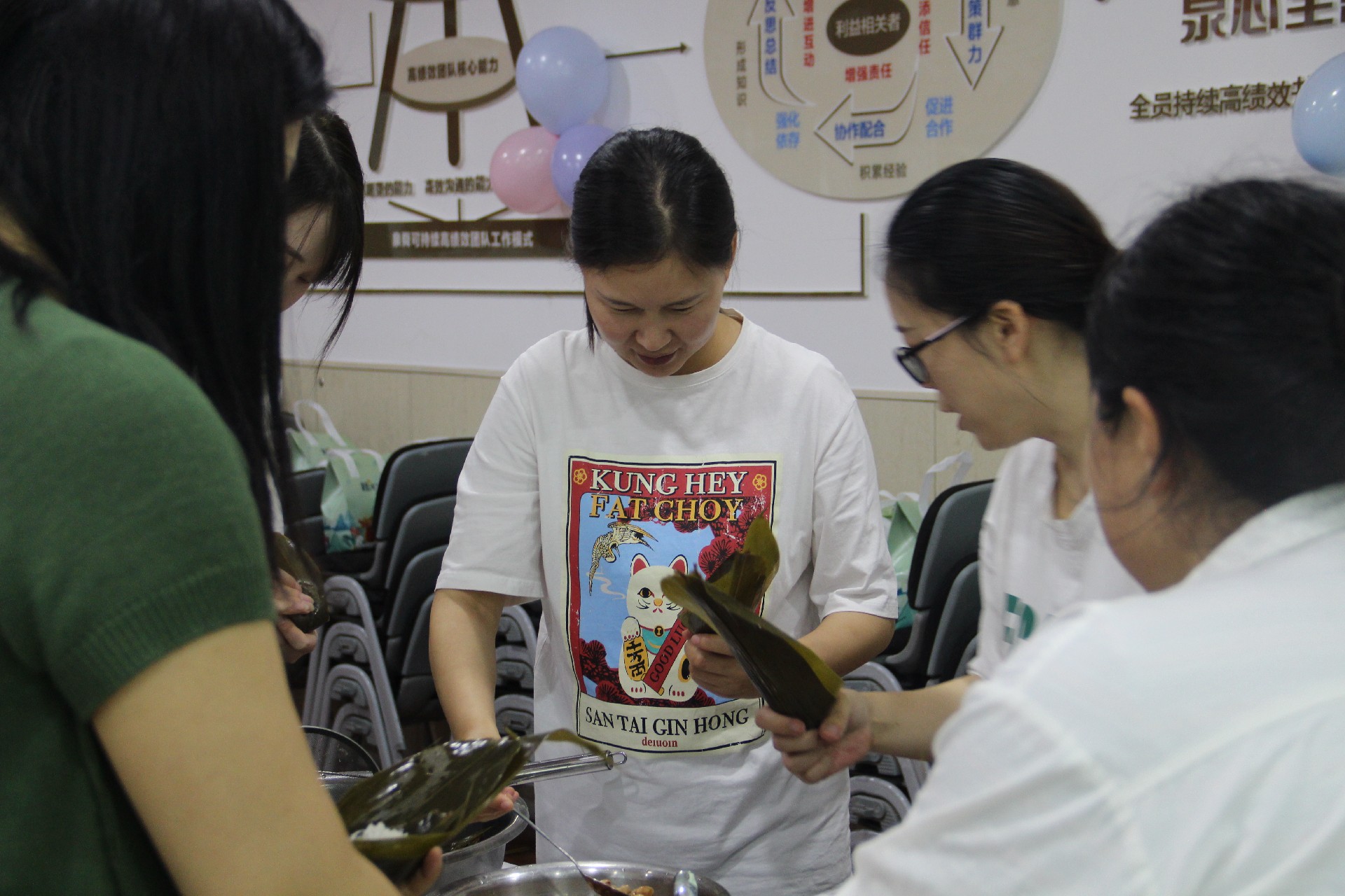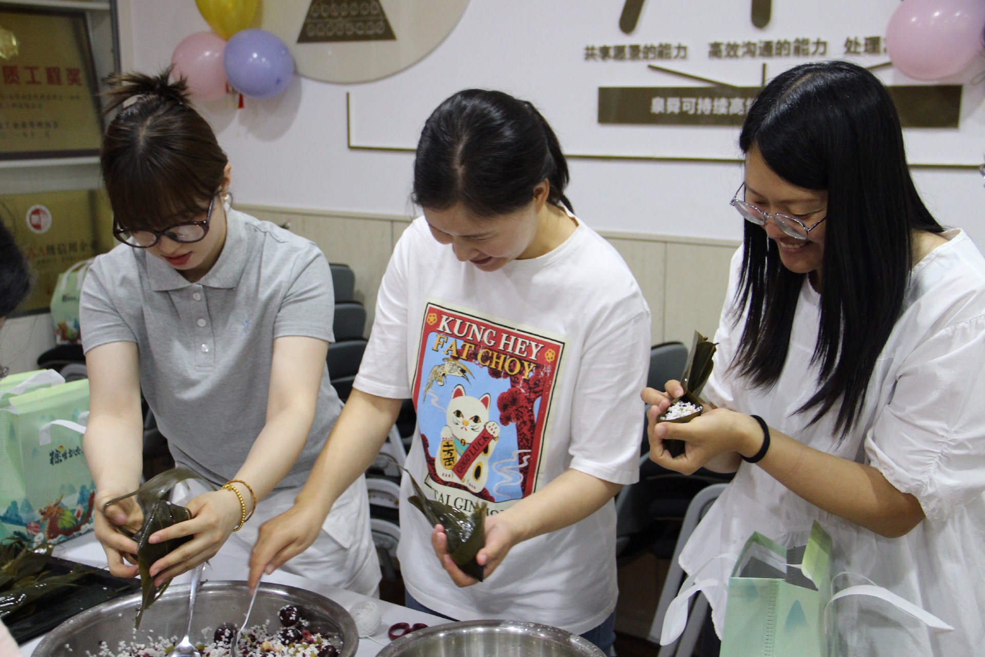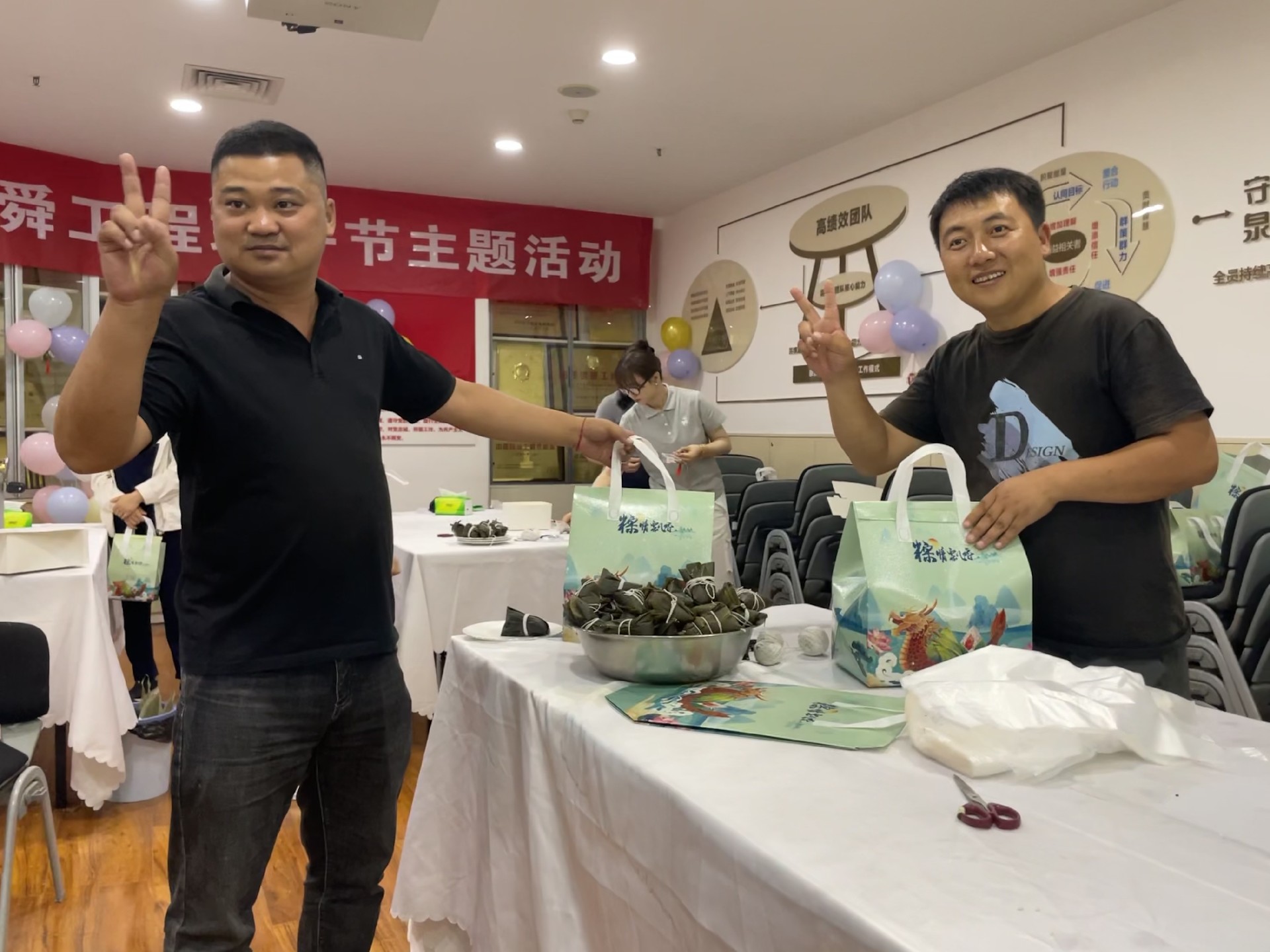 包粽子環(huán)節(jié)是此次活動(dòng)的重頭戲,現(xiàn)場熱鬧非凡。參與者們紛紛拿出自己的看家本領(lǐng),捋粽葉、填糯米、壓緊實(shí)、封口、扎捆,巧手翻飛間,一只只形態(tài)各異的粽子便誕生了。每親手完成一個(gè)粽子,大家都會(huì)露出滿足和自豪的笑容。有的員工手法嫻熟,很快就包出了形狀美觀的粽子;有的員工則是第一次嘗試,過程略顯曲折,但大家都樂在其中,享受著包粽子的樂趣。