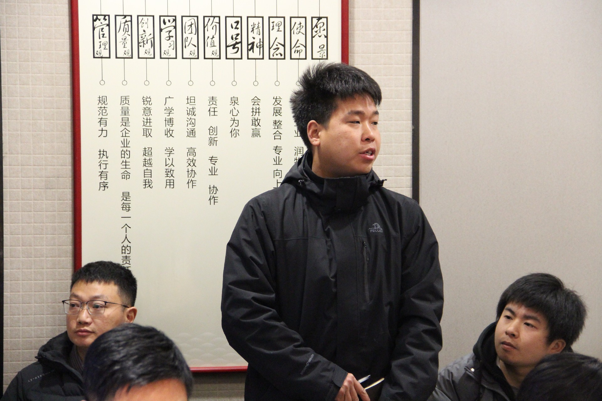 隨后,新入職同事逐一進行了自我介紹,并分享入職以來的難忘經(jīng)歷、個人感悟及職業(yè)規(guī)劃。同事們?nèi)鐢?shù)家珍,紛紛講到自己與泉舜的相識、相知,他們的言語中透露出對泉舜工程的深切認(rèn)同和對未來工作的憧憬。有的同事分享了入職初期的小故事,表達了對公司領(lǐng)導(dǎo)和團隊的感激之情;有的則表示來到公司后自己的成長很快,會繼續(xù)學(xué)習(xí),均展現(xiàn)了積極向上的精神面貌。