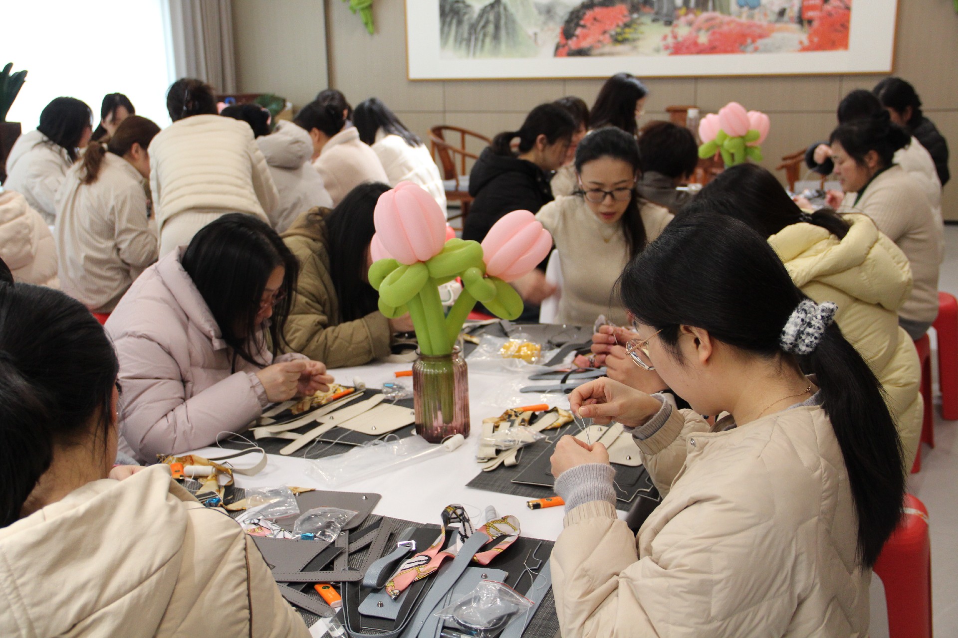 “緊張激烈”的游戲之后,手工DIY包包活動(dòng)的序幕也緩緩拉開。文化活動(dòng)中心被布置得宛如一個(gè)夢(mèng)幻般的手工工坊,排列整齊的布料、精致的包扣、各式各樣的線繩和裝飾品琳瑯滿目。在專業(yè)手工老師的悉心指導(dǎo)下,女性員工們紛紛化身成為縫紉師,開始了一場(chǎng)關(guān)于美的創(chuàng)造之旅。她們或認(rèn)真引線,或仔細(xì)縫制包邊,或精心裝飾配飾。每一針一線,都傾注了她們對(duì)美的追求和對(duì)生活的熱愛?,F(xiàn)場(chǎng)氣氛熱烈而有序,大家互相幫助,共同分享著創(chuàng)作的喜悅和成就感。