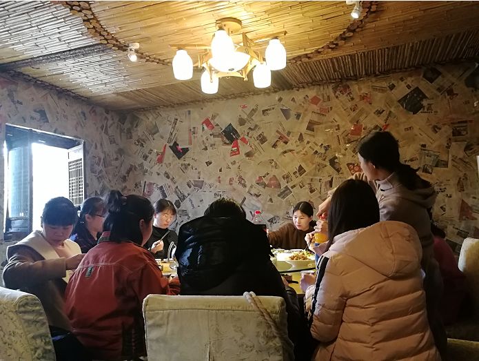 中午,大家前往出發(fā)“大年農(nóng)莊”吃農(nóng)家菜,進(jìn)入院內(nèi),滿滿的都是兒時(shí)場(chǎng)景,勾起了濃濃懷念,雞圈、磨盤、織機(jī)、黑白電視、老式茶壺、具有時(shí)代印記的宣傳標(biāo)語(yǔ),更讓我們感嘆科技的進(jìn)步、時(shí)代的變遷,社會(huì)的發(fā)展。