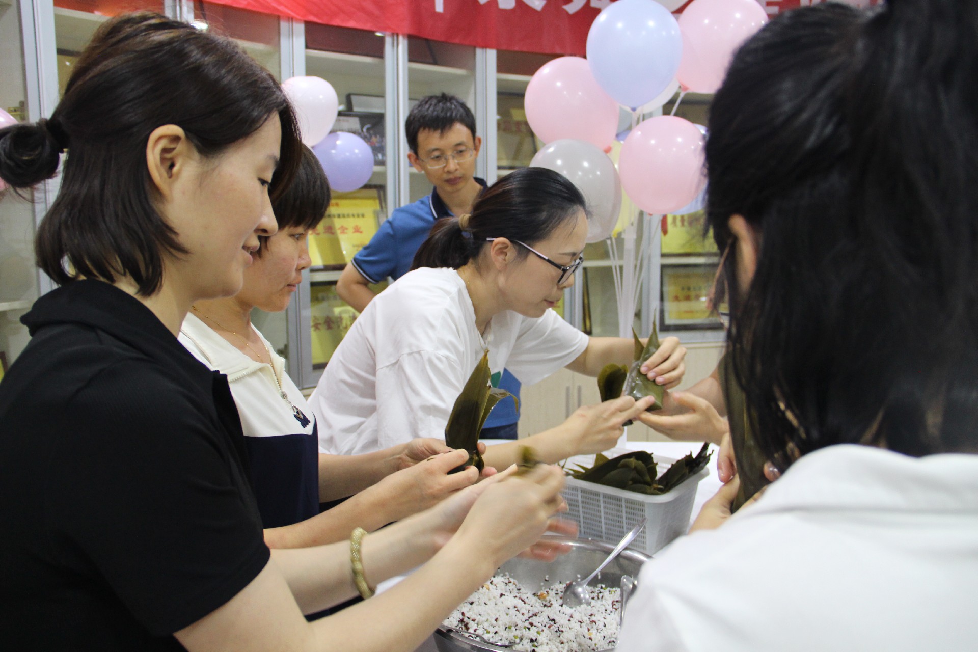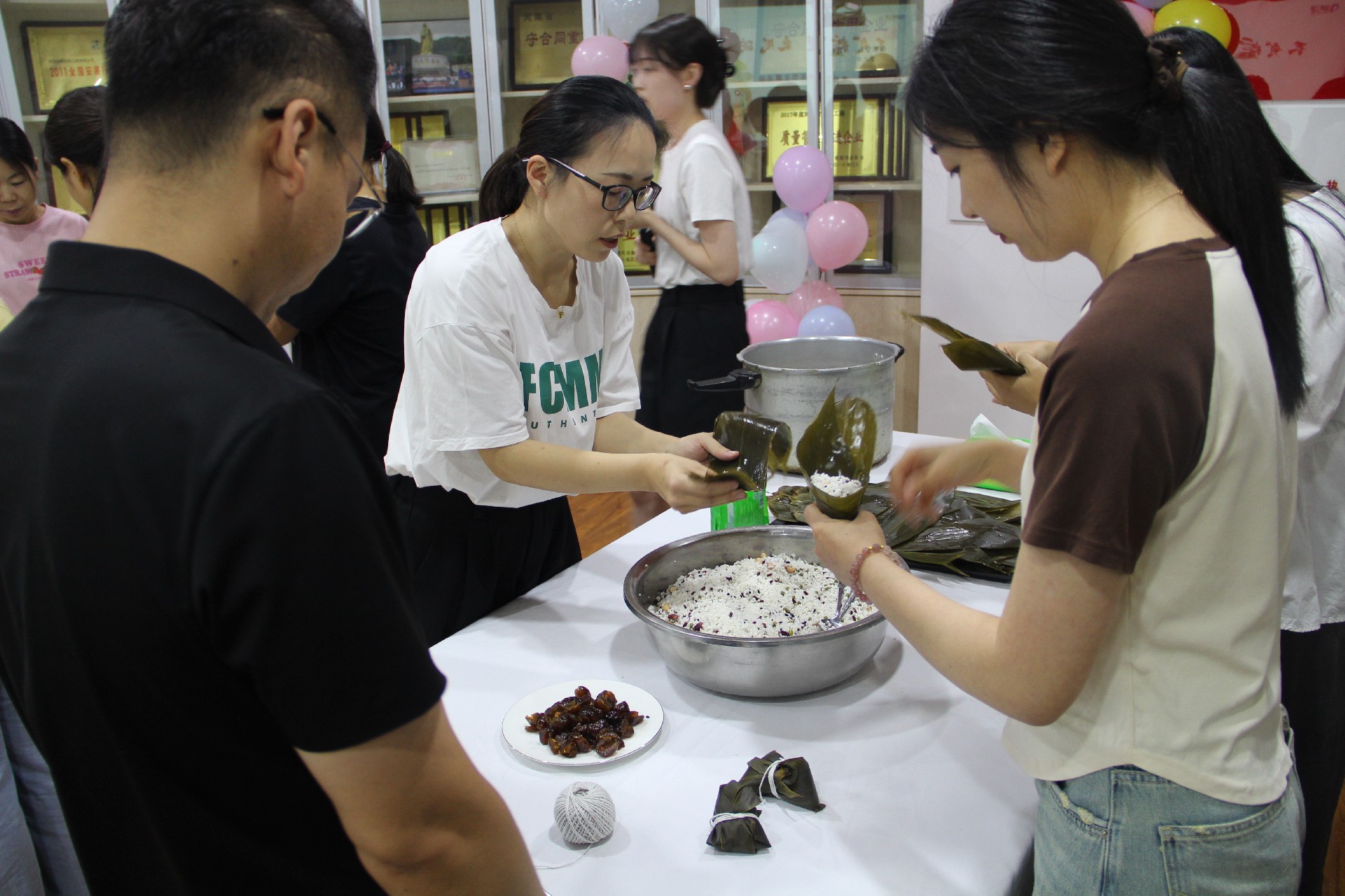 包粽子環(huán)節(jié)是此次活動(dòng)的重頭戲,現(xiàn)場熱鬧非凡。參與者們紛紛拿出自己的看家本領(lǐng),捋粽葉、填糯米、壓緊實(shí)、封口、扎捆,巧手翻飛間,一只只形態(tài)各異的粽子便誕生了。每親手完成一個(gè)粽子,大家都會(huì)露出滿足和自豪的笑容。有的員工手法嫻熟,很快就包出了形狀美觀的粽子;有的員工則是第一次嘗試,過程略顯曲折,但大家都樂在其中,享受著包粽子的樂趣。