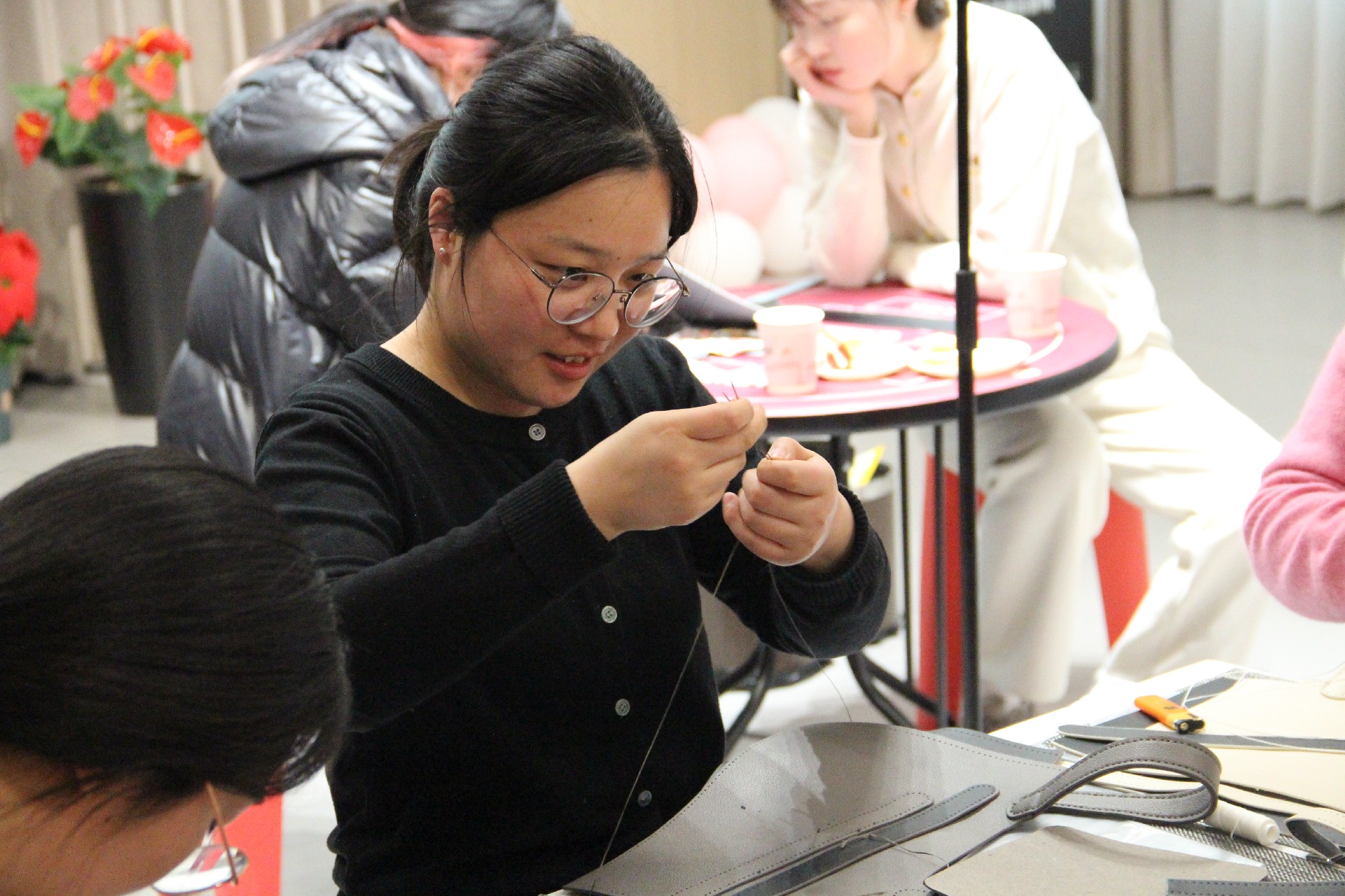 “緊張激烈”的游戲之后,手工DIY包包活動(dòng)的序幕也緩緩拉開。文化活動(dòng)中心被布置得宛如一個(gè)夢(mèng)幻般的手工工坊,排列整齊的布料、精致的包扣、各式各樣的線繩和裝飾品琳瑯滿目。在專業(yè)手工老師的悉心指導(dǎo)下,女性員工們紛紛化身成為縫紉師,開始了一場(chǎng)關(guān)于美的創(chuàng)造之旅。她們或認(rèn)真引線,或仔細(xì)縫制包邊,或精心裝飾配飾。每一針一線,都傾注了她們對(duì)美的追求和對(duì)生活的熱愛?,F(xiàn)場(chǎng)氣氛熱烈而有序,大家互相幫助,共同分享著創(chuàng)作的喜悅和成就感。